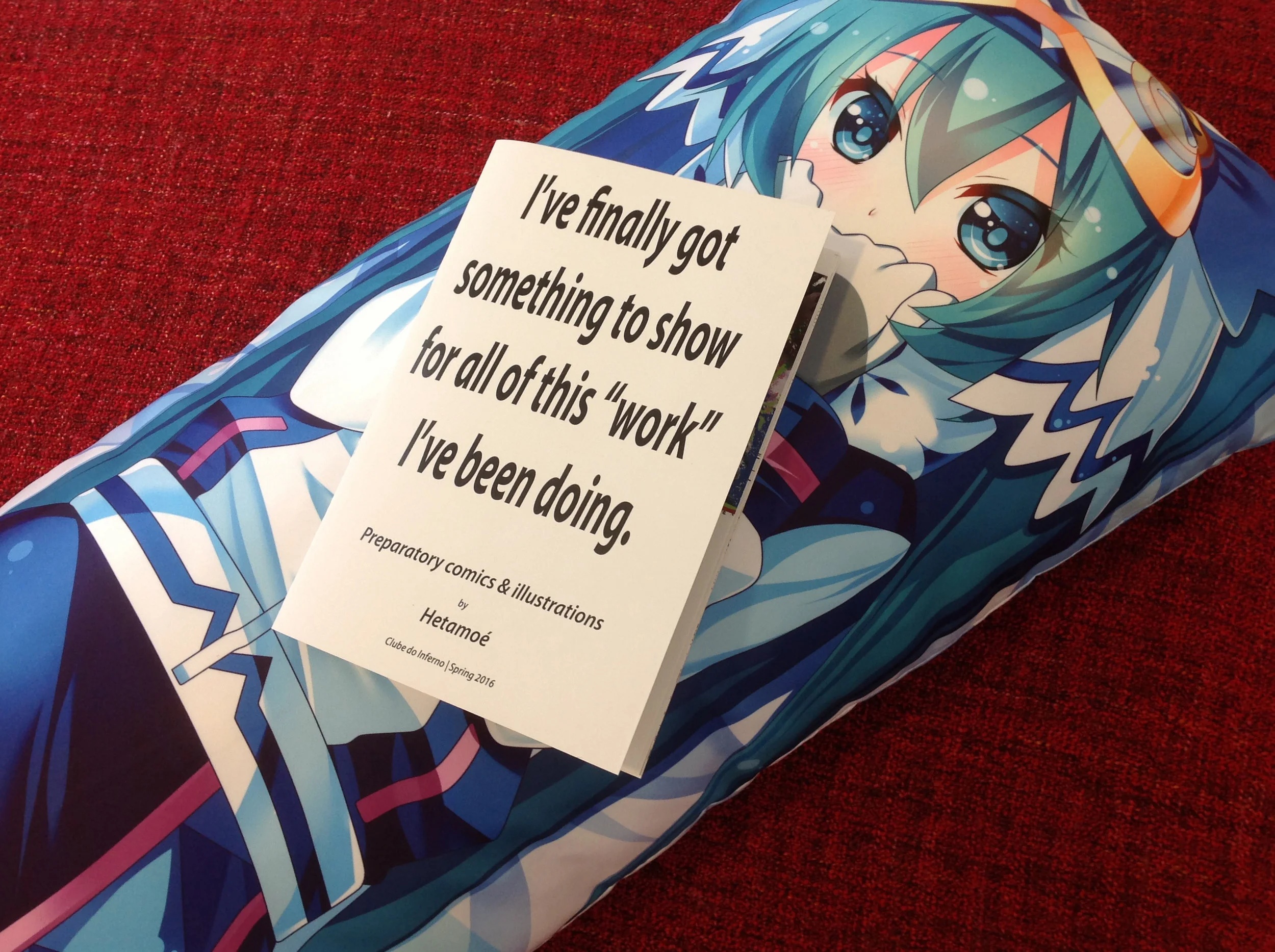 Com um título demasiado longo para o seu próprio bem, I finally have something to show for all of this work I’ve been doing. Preparatory comics & illustrations de Hetamoé é uma mistura de art dump e art book composta por pedaços de banda desenhada e ilustração quebrados, separados e rejeitados, resultantes do trabalho – e desespero − da autora a propósito de um projeto durante Março de 2016. A capa e contracapa textuais, em preto e branco austero, contrastam com as ilustrações luxuriantemente coloridas no interior, mostrando não só a queda de Hetamoé para desenhos e pinturas digitais crus e exuberantes, mas também para a experimentação ao ponto da esquizofrenia estilística. O título, jogando com a ironia de estar-se sempre ocupado com trabalho, apenas para se acabar com um resultado público feito de fragmentos e rejeições, enfatiza a “estética do falhanço” subjacente a esta publicação. Se querem espreitar o processo criativo tumultuoso da artista weeabooresidente do Clube do Inferno, não percam esta auto-descrita “tentativa de exorcismo”, belamente ilustrada na tradição heta‑uma!
