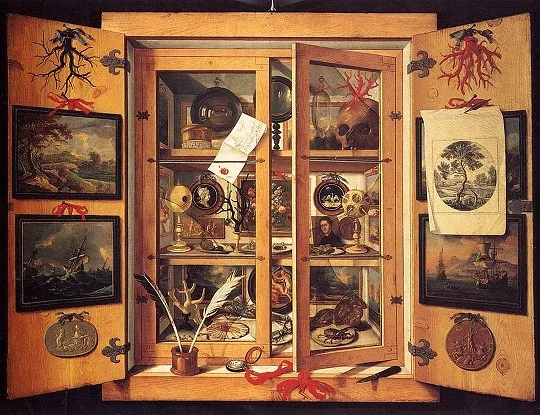 Figure 3 (right) Cabinet of Curiosities (1695) by Domenico Remps, held in the Opificio delle Pietre Dure, in Florence. Source.