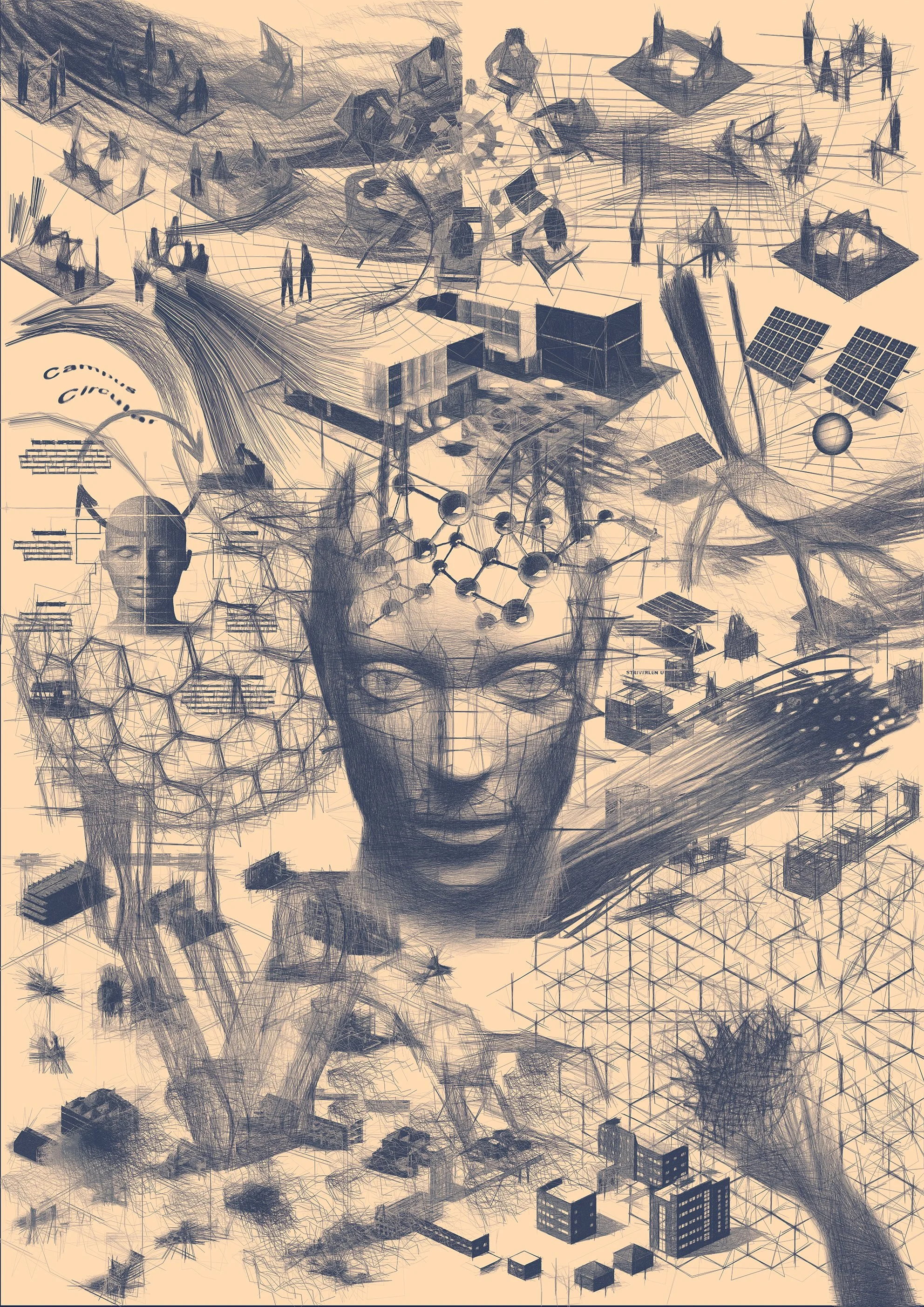 As minhas obras, concebidas para serem expostas em formato A2, partem de uma narrativa visual fluída para criar composições intrincadas e complexas que incluem a maioria dos elementos mencionados nos textos em que se baseiam: dos Departamentos de Ciências dos Materiais (DCM), Química (DQ) e Ciências Sociais e Aplicadas (DCSA).